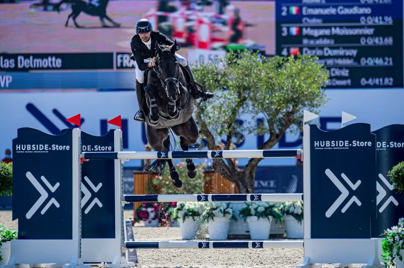 Nouvelle semaine de compétition internationale à St Tropez avec en point d'orgue le Grand Prix 4* qui s'est couru ce dimanche après-midi.36 couples étaient au départ de l'épreuve à 1m55 avec barrage.Sept couples ont réussi le sans-faute et se sont qualifiés pour le barrage.Seulement cinq d'entre eux ont réalisé le doublé sur cet ultime parcours du week-end. Le cavalier de l'équipe de France Nicolas Delmotte, en selle sur Ilex VP, propriété de Béatrice Mertens, est le plus rapide en piste et boucle le tour en 41,58 secondes. Le Nordiste l'emporte devant son compatriote Titouan Schumacher associé à Atome Z, propriété du Haras des Brimbelles qui conclut son barrage en 41,67 secondes.L'Italien Emmanuele Gaudiano complète le podium.Mégane Moissonnier et Bracadabra, propriété de Laurent Guillet terminent au pied du podium.Retrouvez tous les résultats du week-end ici https://online.equipe.com/fr/competitions/38391